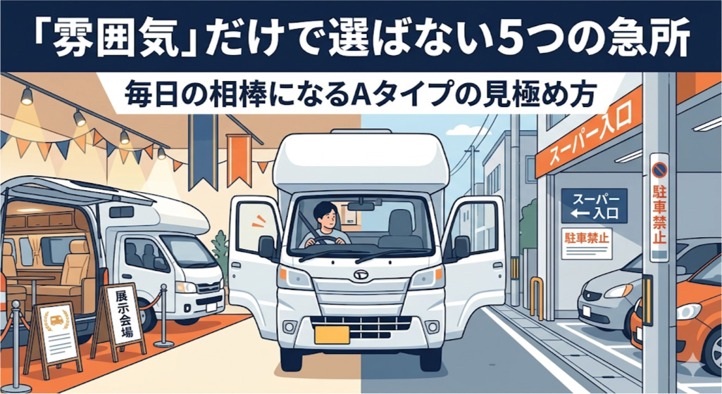 Aタイプ選びの成功は、展示場で目を引く「華やかさ」に流されないこと。「この車なら、週末に思い立った瞬間にヒョイと出発できる」。そう確信できる実用性こそが、あなたの旅をより身近で、楽しいものにしてくれます。