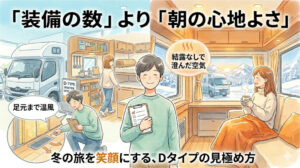 Dタイプ特有の「長期旅への対応」と「冬場の厳しい環境下での快適性」を両立させるために、以下の重要ポイントを解説しています。
