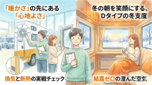 このページでは、Dタイプを検討する際に避けて通れない「冬の寒さ対策」や、長期間の運用で困らないための装備選びのポイントを記事ごとにまとめています。