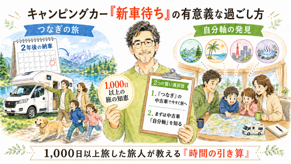 「キャンピングカーを注文したけれど、納車は2年先。その間に子供は成長してしまうし……」 今、キャンピングカーの新車市場では1年、2年待ちは当たり前の光景です。この「空白の2年」をどう過ごすかは、あなたのこれからの旅の質を大きく左右する分かれ道になるかもしれません。