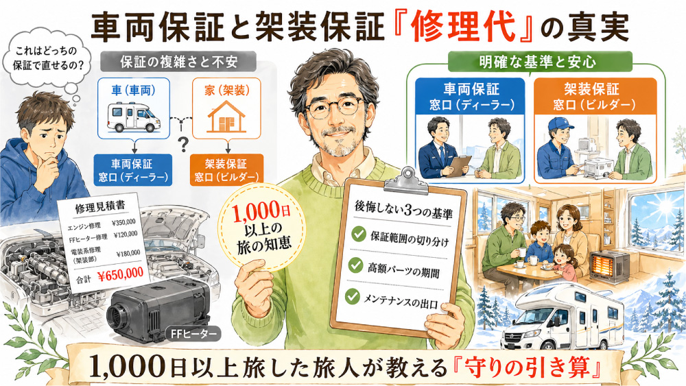 車両保証と架装保証の境界線をはっきりさせ、自分の旅スタイルに合った最優先設備の保証期間を把握しておく。この基本さえ守れば、修理代に怯えることなく、最高に自由な旅へと走り出せます。