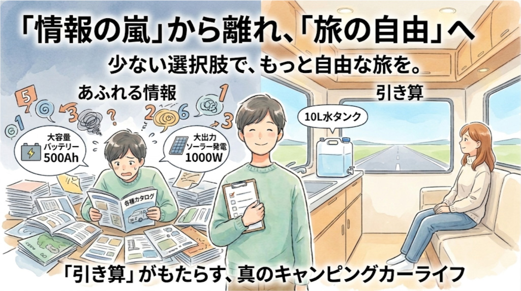 それは、「キャンピングカー選びとは、情報を足すことではなく、削ぎ落とすことである」という真実です。