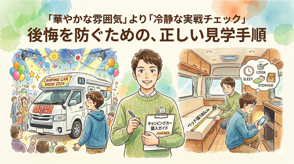 キャンピングカーショーの華やかな会場、あるいは販売店に並ぶピカピカの新車や中古車。一歩足を踏み入れ、きれいに整えられた内装や充実した設備を目の当たりにすると、「これなら最高の旅ができそう!」と、第一印象だけで心が決まりそうになるかもしれません。